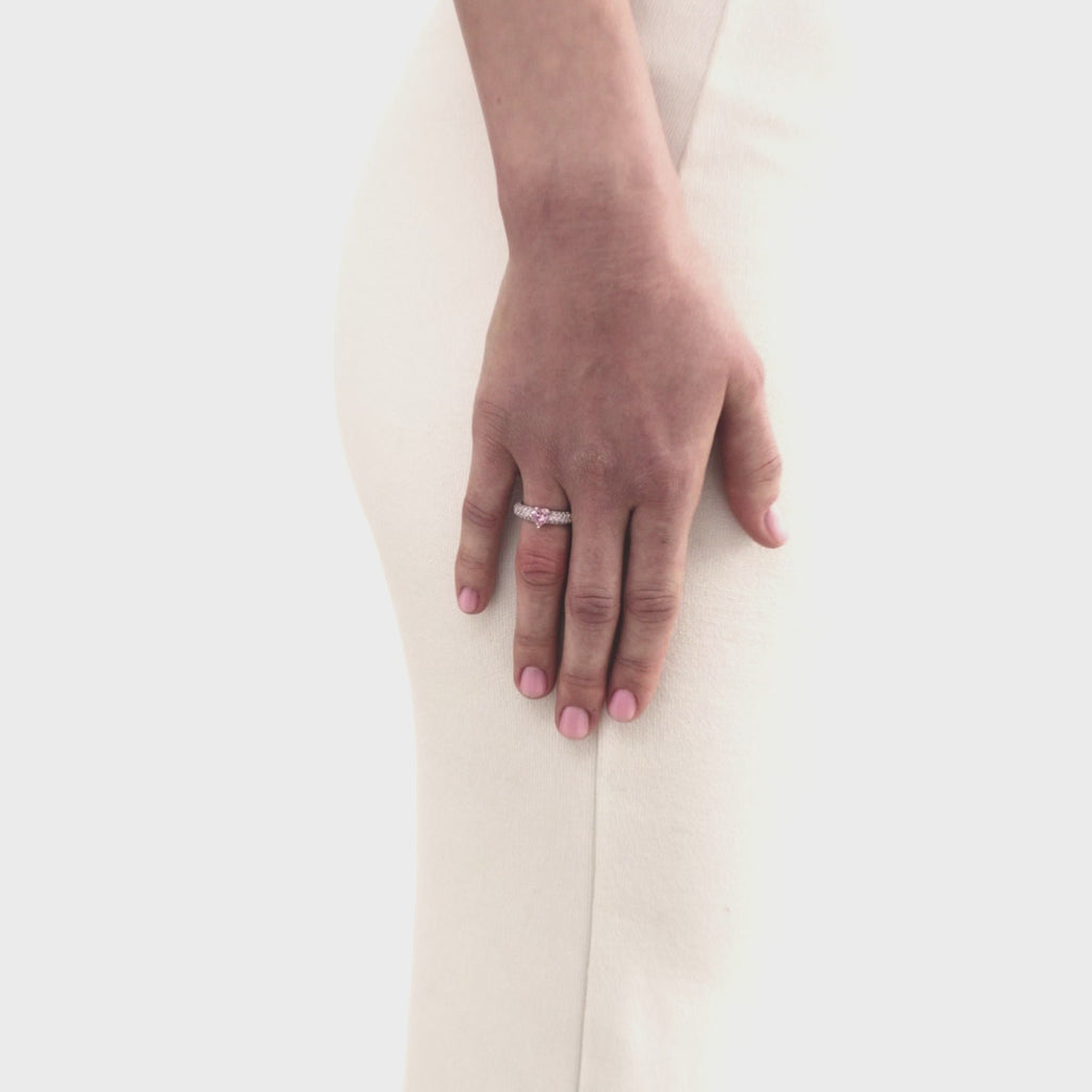 Pierścionek Crystal Heart Pave Pink Białe Złoto S925